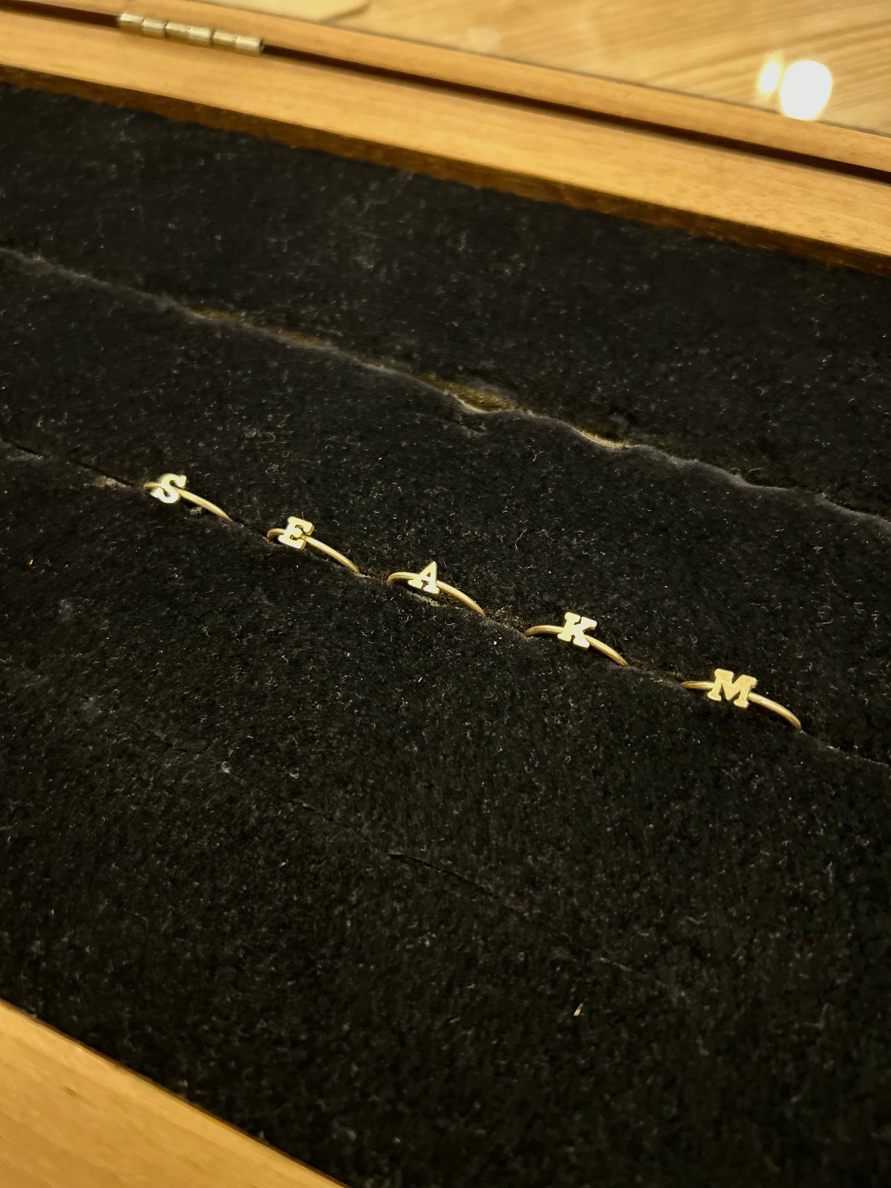 手持ちに合わせても、同じシリーズの違うイニシャルと重ね付けしても可愛い。