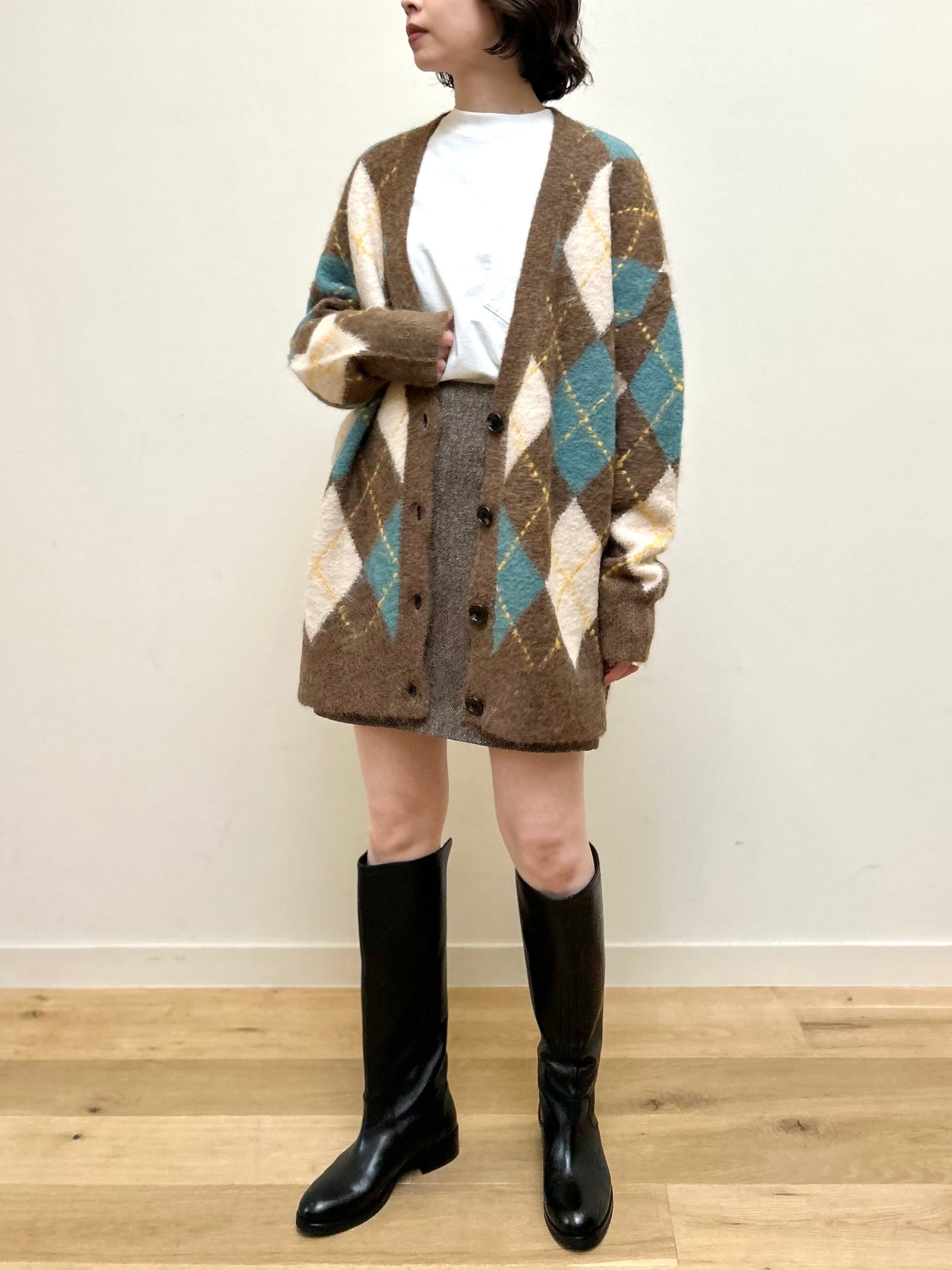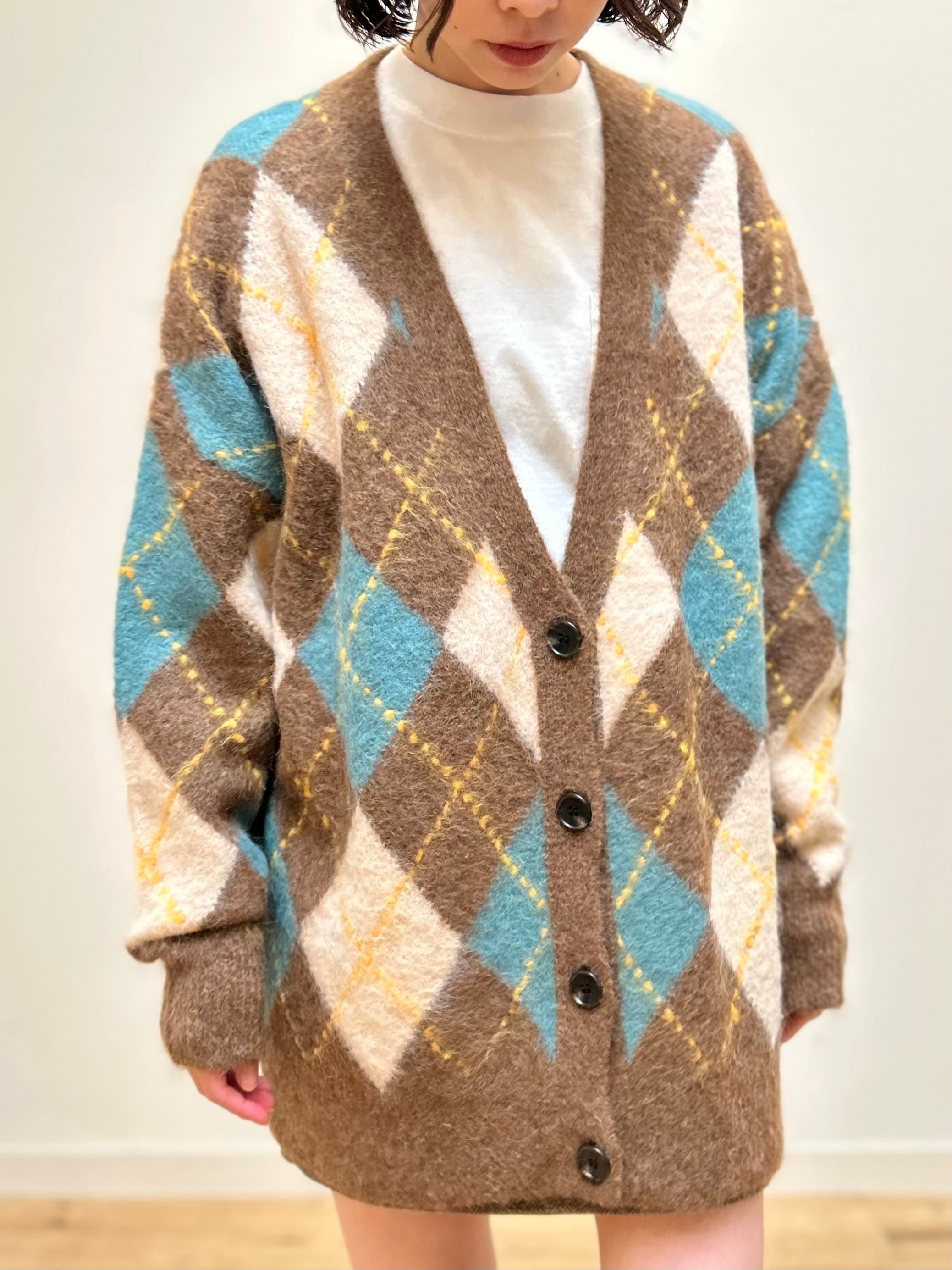配色から柄のサイズにまでこだわったアーガイルが目を惹くカーディガン。アクセントの配色ステッチは、贅沢にも全て手差しで仕上げられたこだわりのつまった一枚。