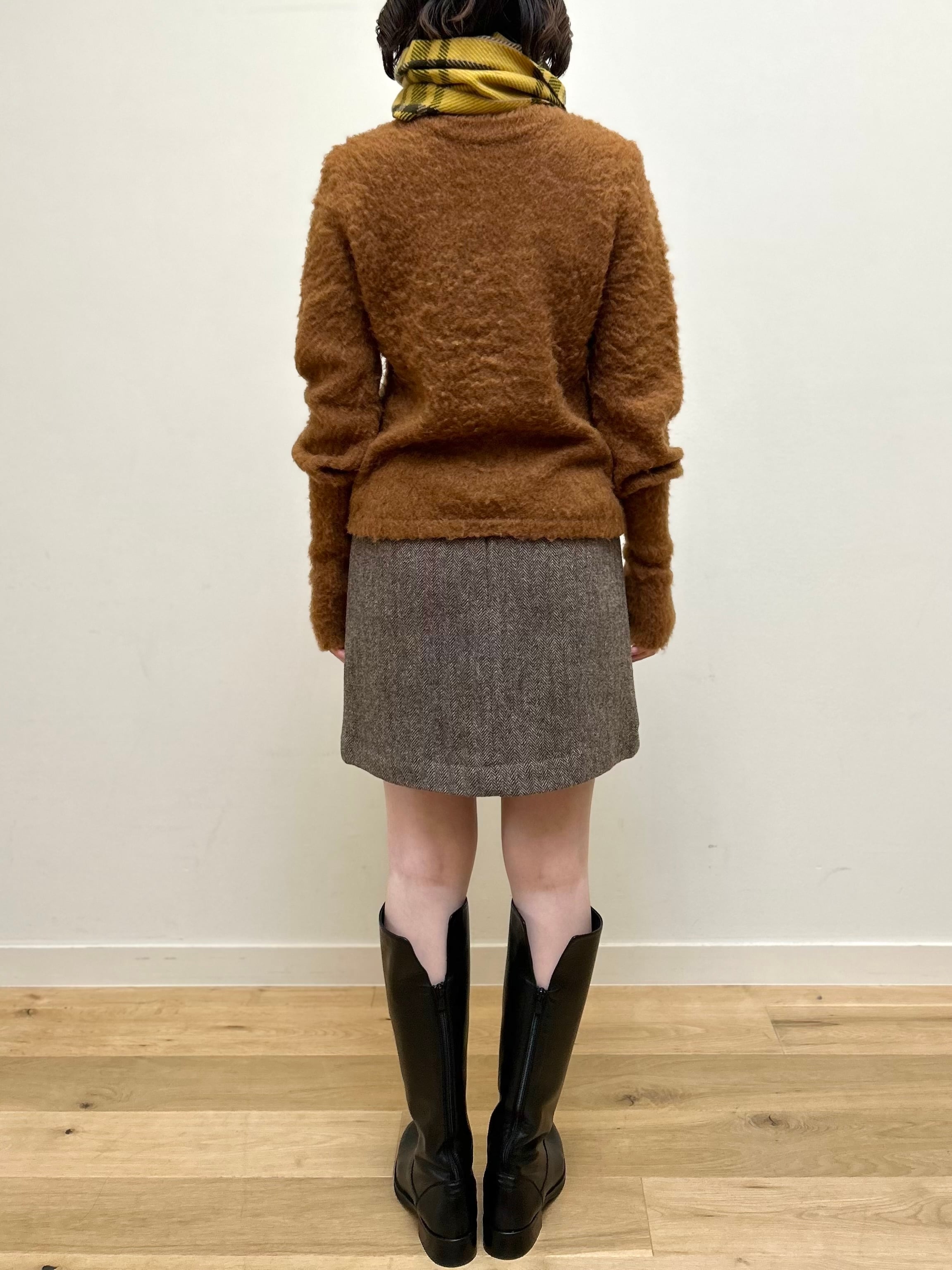 本命のタイツLOOKを最大限楽しめること間違いなしのアイテムです。英国羊毛を使用したメンズっぽい生地を、フェミニンなアイテムに落とし込むのはシンゾーンならでは。