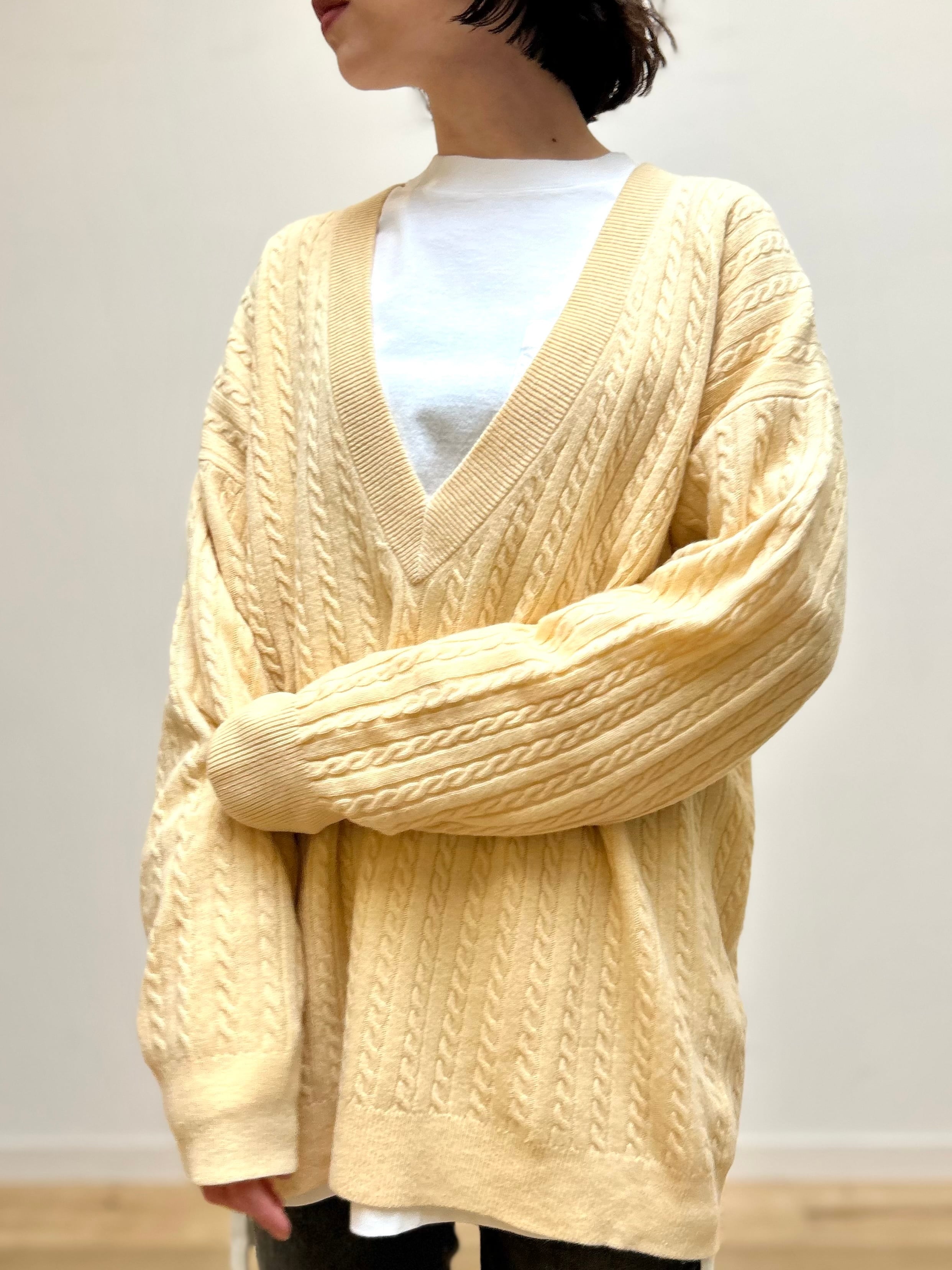 ウールとカシミアの贅沢な混紡素材を使用した、深Vネックのオーバーサイズセーターです。