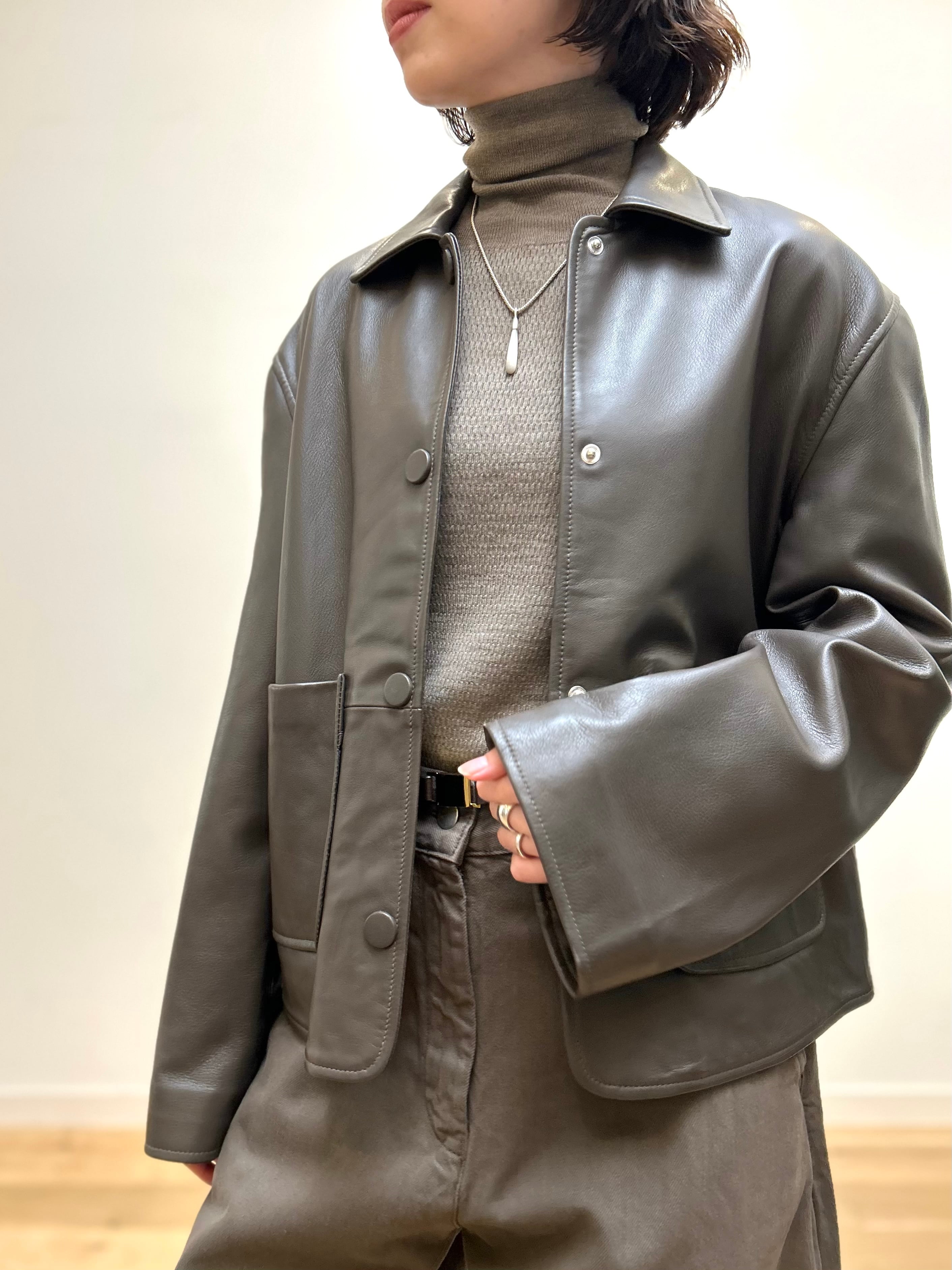 しっとりと薄手のレザージャケット。上質で大人なカラーリングは飽きが来ずに長くお召しいただけると思います。